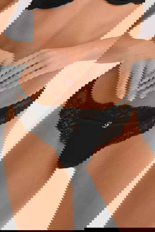 • Stringi ar vienkāršu jostu • Dekoratīvās mežģīnes • Kokvilnas ieliktnis • 82% poliamīds, 18% elastāns.
