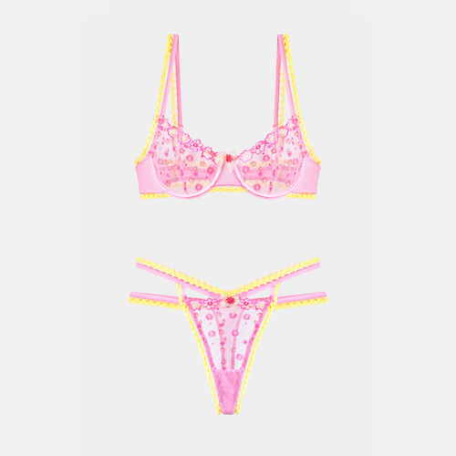 • Sutien cu suport de sârmă • Material plasă cu model floral • Necăptușit • Bretele reglabile • Bretele din spate reglabile • Chiloți cu talie înaltă • Inserție bumbac • Transparent • 100% Polyamide
