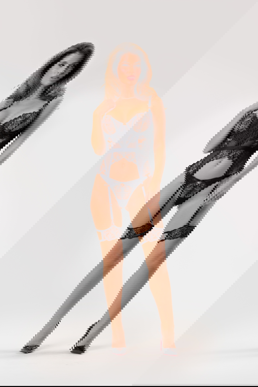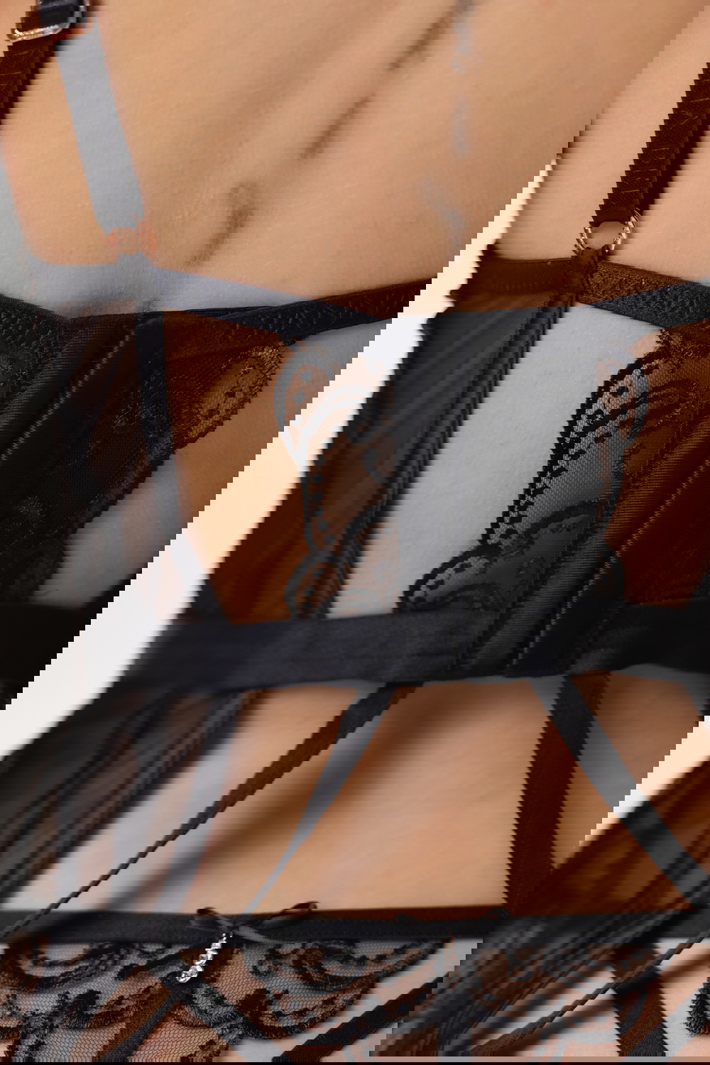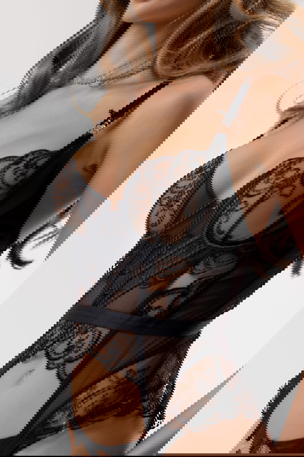 • Кошница с телена опора • Корсет без подплата • Регулируеми презрамки • Еластична задна лента • Tangice • Памучна вложка • Държачи за жартиери или чорапи • Включени жартиери • 73% полиестер, 27% полиамид