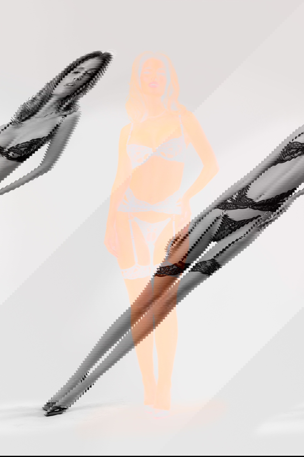 • Кошница с телена опора • Не е предмет • Регулируеми презрамки • Бикини тип "стринг" с нормална талия • Памучна вложка • Колан за жартиери • 78% полиестер, 22% полиамид