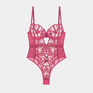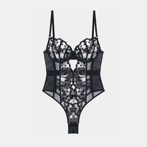 • Кошница с телена опора • Мрежеста материя с флорална дантела • Не е предмет • Регулируеми презрамки • Еластична задна лента • Колан за прилепване по тялото • Памучна вложка • Държачи за чорапи • Прозрачен • 87% найлон, 13% спандекс