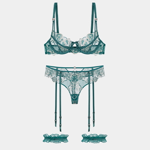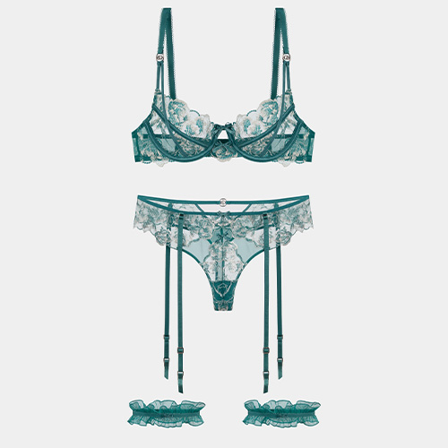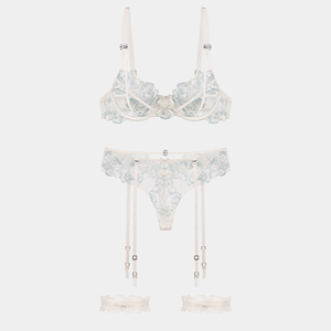 • Körbchen mit Bügel • Unwattiert • Einstellbare Träger • Tanga mit abnehmbaren Strumpfhalterriemen • Baumwolleinsatz • Befestigte Strumpfbänder • 100% Polyamid