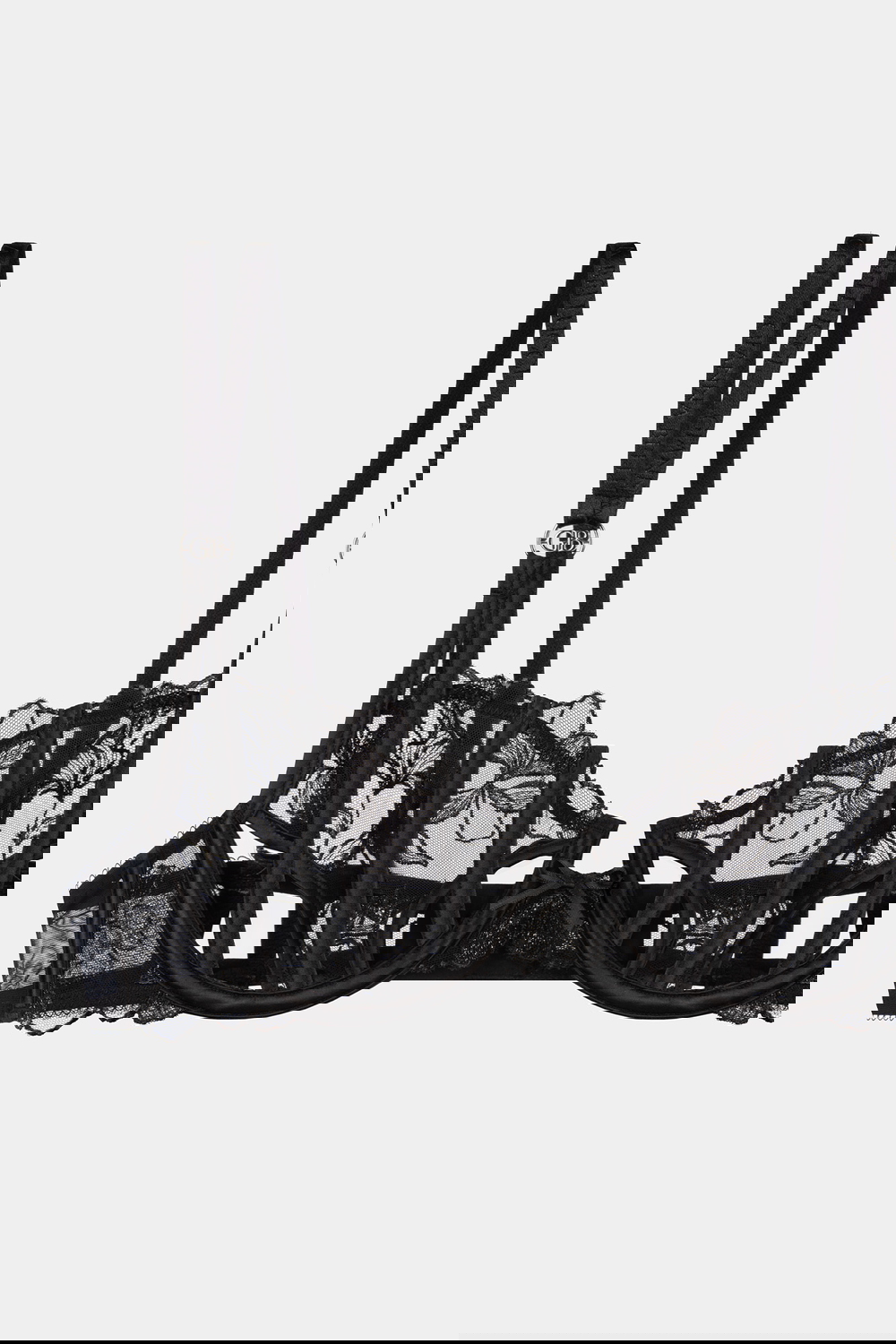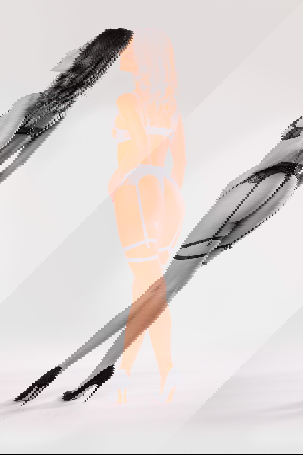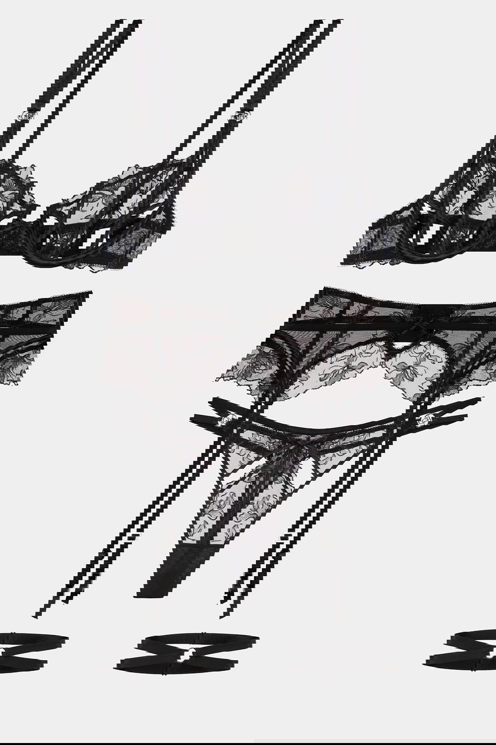 • Basket with wire support • Not subject • Adjustable shoulder straps • Thong bikini with normal waist • Cotton insert • Pašček z držki za nogavice ali garter • Priložen garter • 81% poliamid, 19% elastan