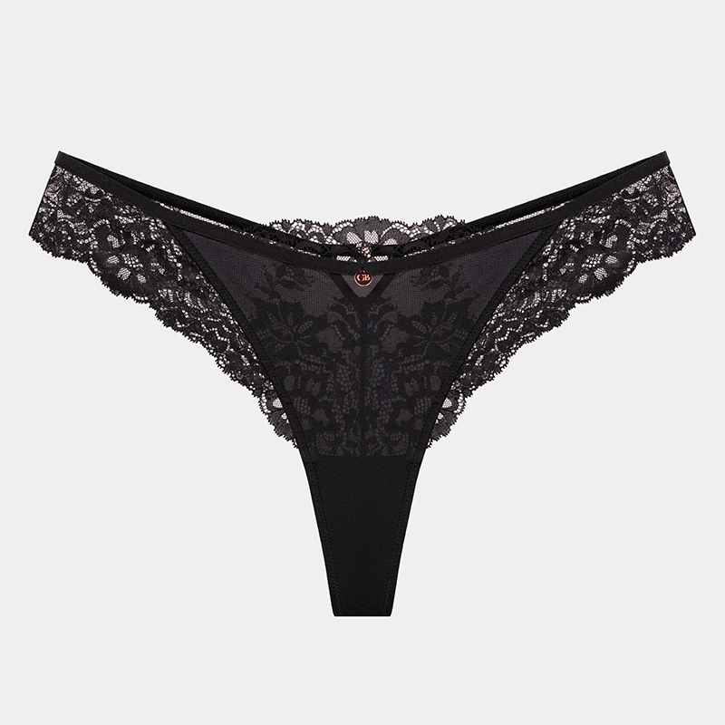 • Brazilske gaćice s regularnim pojasom • Dekorativna čipka • Pamučni umetak • 82% poliamid, 18% elastan