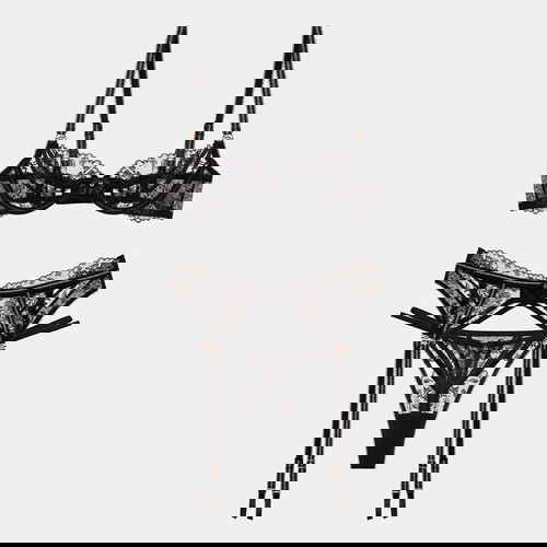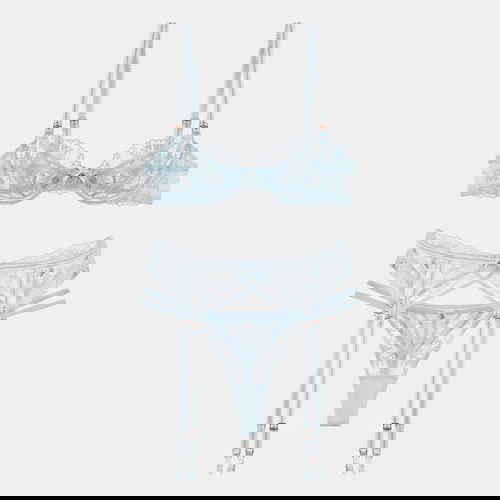 • Reggiseno con ferretto • Sfoderato • Spalline regolabili • Bikini a perizoma con vita normale • Inserto in cotone • Porta calzini • Trasparente • 88% nylon, 12% elastan • Le calze di nylon non sono incluse