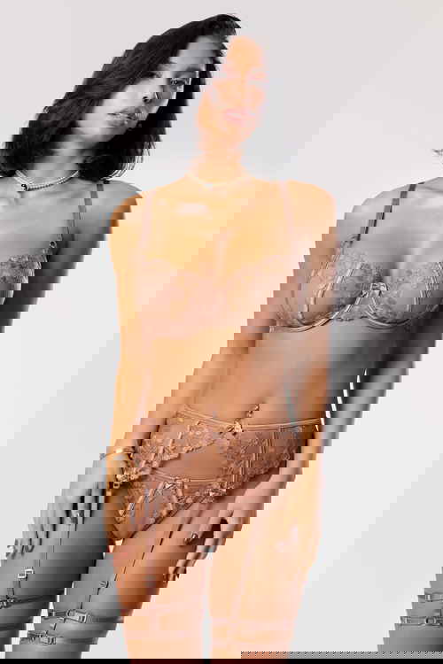 • Coș cu suport sârmă • Necăptușit • Bretele reglabile • Tanga cu talie normală • Inserție bumbac • Teacă cu jartiere reglabile • Transparent • 82% nailon, 18% spandex