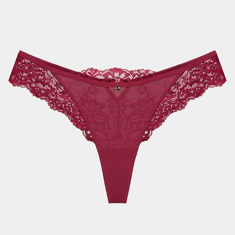 • Chiloți Brazil cu talie simplă • Dantelă decorativă • Inserție bumbac • 82% poliamidă, 18% elastan
