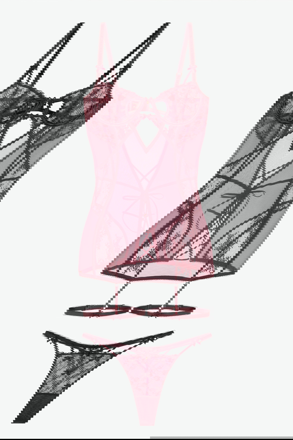 Korzet obleka set spodnjega perila - Bordo rdeča