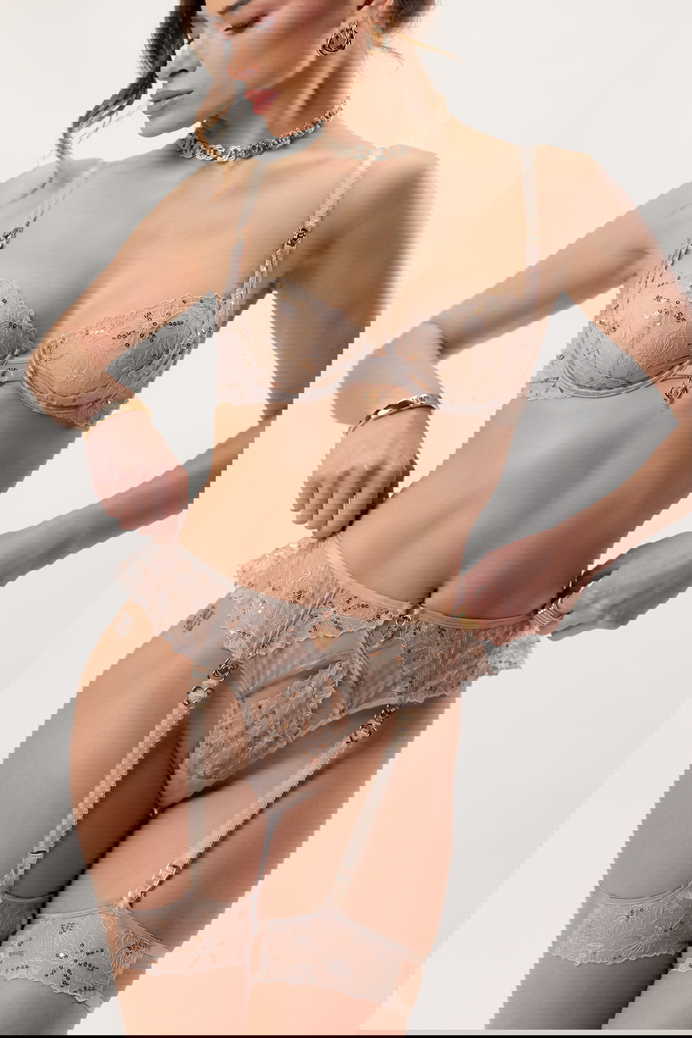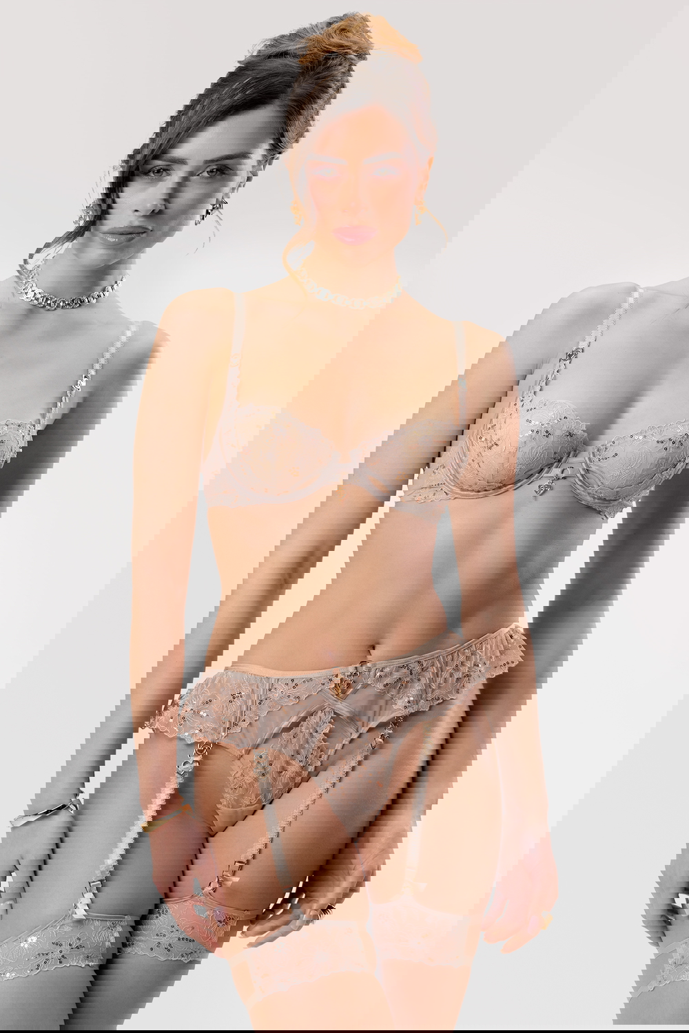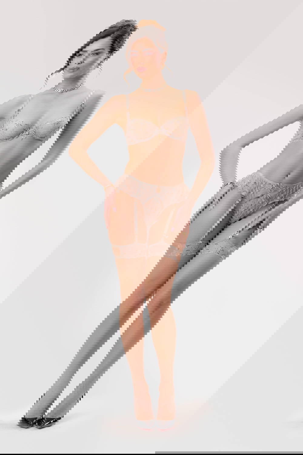 • Basket with wire support • Not subject • Adjustable shoulder straps • Tangice s snemljivimi paščki za nogavice • Cotton insert • Priložene podvezice • 100% polyester